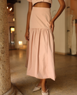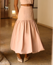 La falda Fallon es una prenda clásica y elegante. La cotilla a la cadera aporta soporte y definición a la silueta, realzando la cintura y creando un efecto estilizado en la parte superior. Desde allí, la falda se abre en un corte amplio y fluido, que ofrece movimiento y ligereza al caminar, generando un look sofisticado y romántico.
