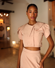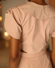 El top Fallon es una top femenino y romántico con un aire sofisticado y elegante. Con su cuello asimétrico y redondo da un toque distintivo y exclusivo, su tela trench aporta firmeza. Su abotonadura corta en la parte frontal mantiene una estética limpia y estructurada, conservando la elegancia propia de una pieza clásica pero con un toque moderno.Tiene mangas tipo tulipan aportan la feminidad y elemento delicado. Una prenda versátil y refinada.